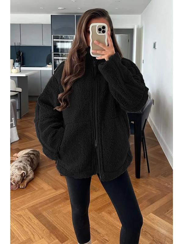 کاپشن زنانه مخمل خواب دار یقه ایستاده با جیب madmext مشکی