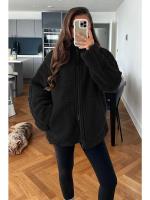 صفحه اصلی\همه کاپشن ها\ کاپشن زنانه مخمل خواب دار یقه ایستاده با جیب madmext مشکی