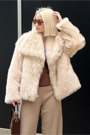 صفحه اصلی\همه کاپشن ها\ کاپشن زنانه کت مخمل خواب دار با یقه ایستاده و جیب بژ madmext