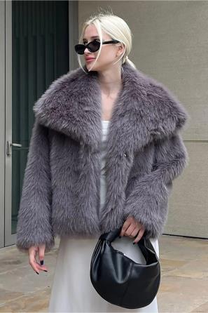 کت کراپ بیسیک مخمل خواب دار خاکستری madmext