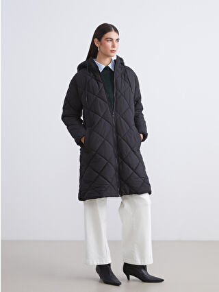 کاپشن بادی زنانه کلاه دار لحافی مشکی LCWAIKIKI