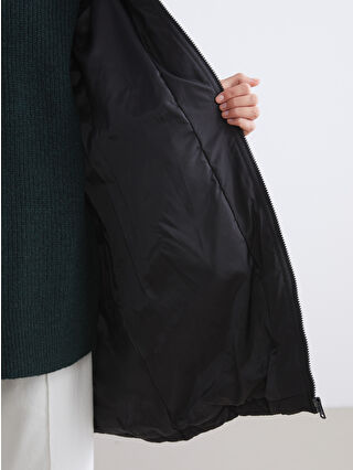 کاپشن زنانه پف دار یقه ای ضد آب Relax Fit Stand مشکی Defacto