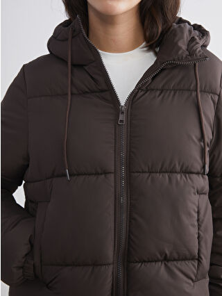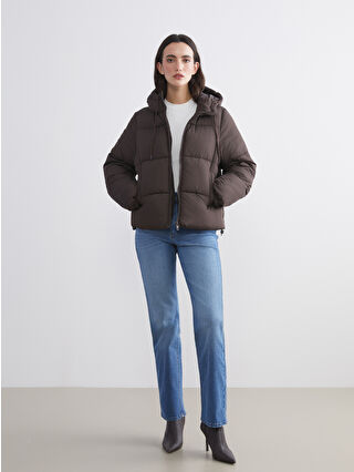 کاپشن بادی زنانه کلاه دار قهوه ای LCW