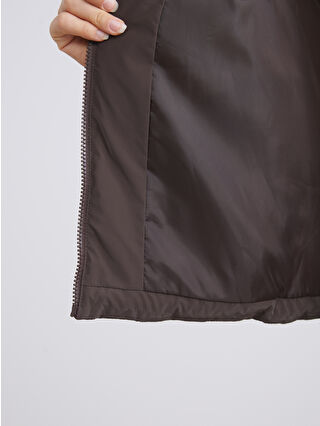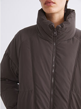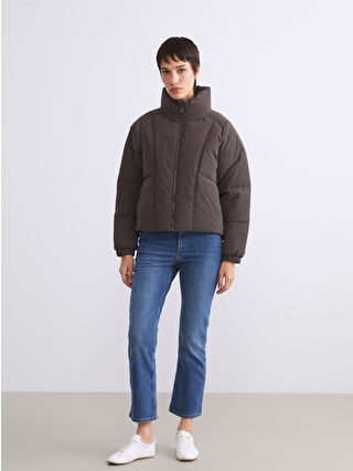 کاپشن پفی زنانه یقه بلند قهوه ای LCW