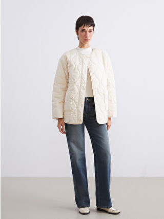 کاپشن بادی زنانه یقه گرد بزرگ و لحافی اکرو LCW