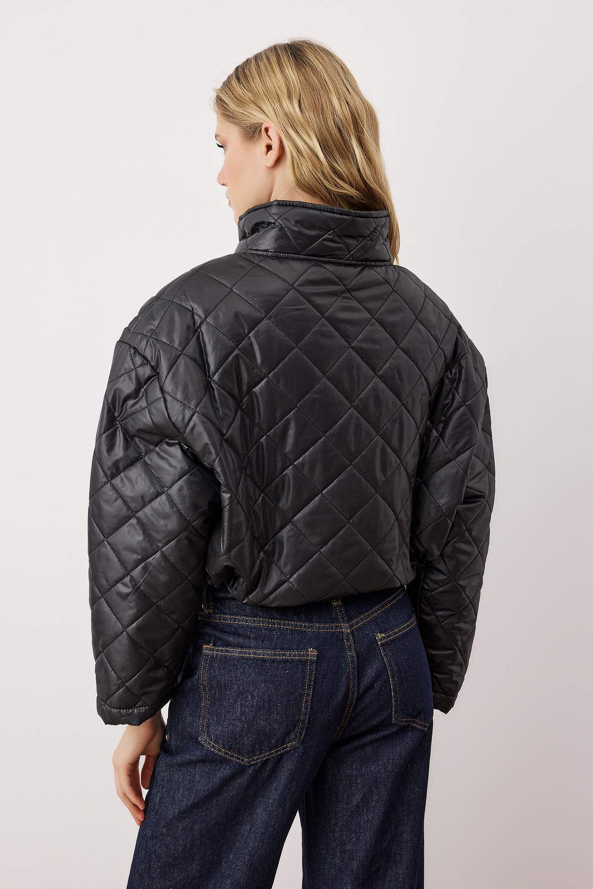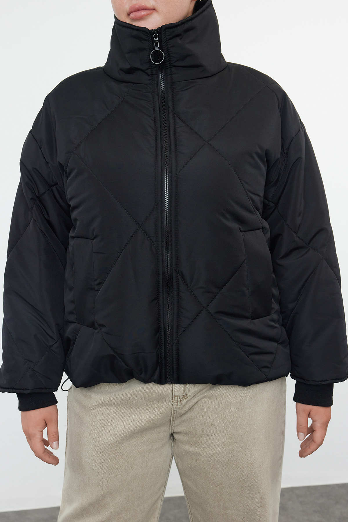 صفحه اصلی\همه کاپشن ها\کاپشن زنانه چرم مصنوعی مشکی سایز معمولی با جیب Trendyolmilla