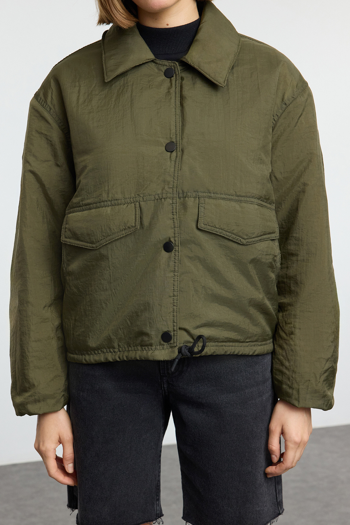 کاپشن زنانه چرم مصنوعی مشکی سایز معمولی با جیب Trendyolmilla