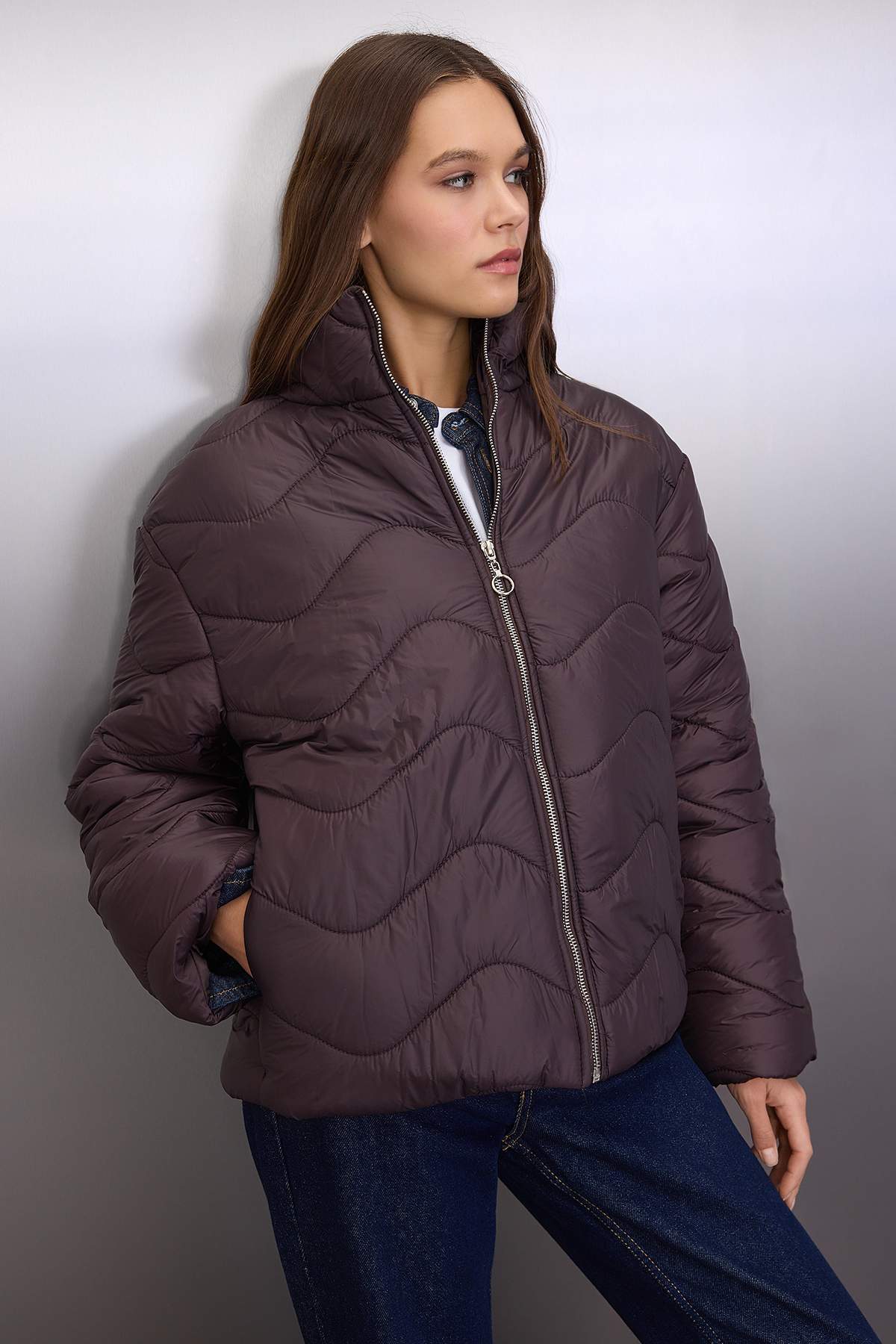 کتپشن پفی زنانه کلاه دار بژ happiness istanbul