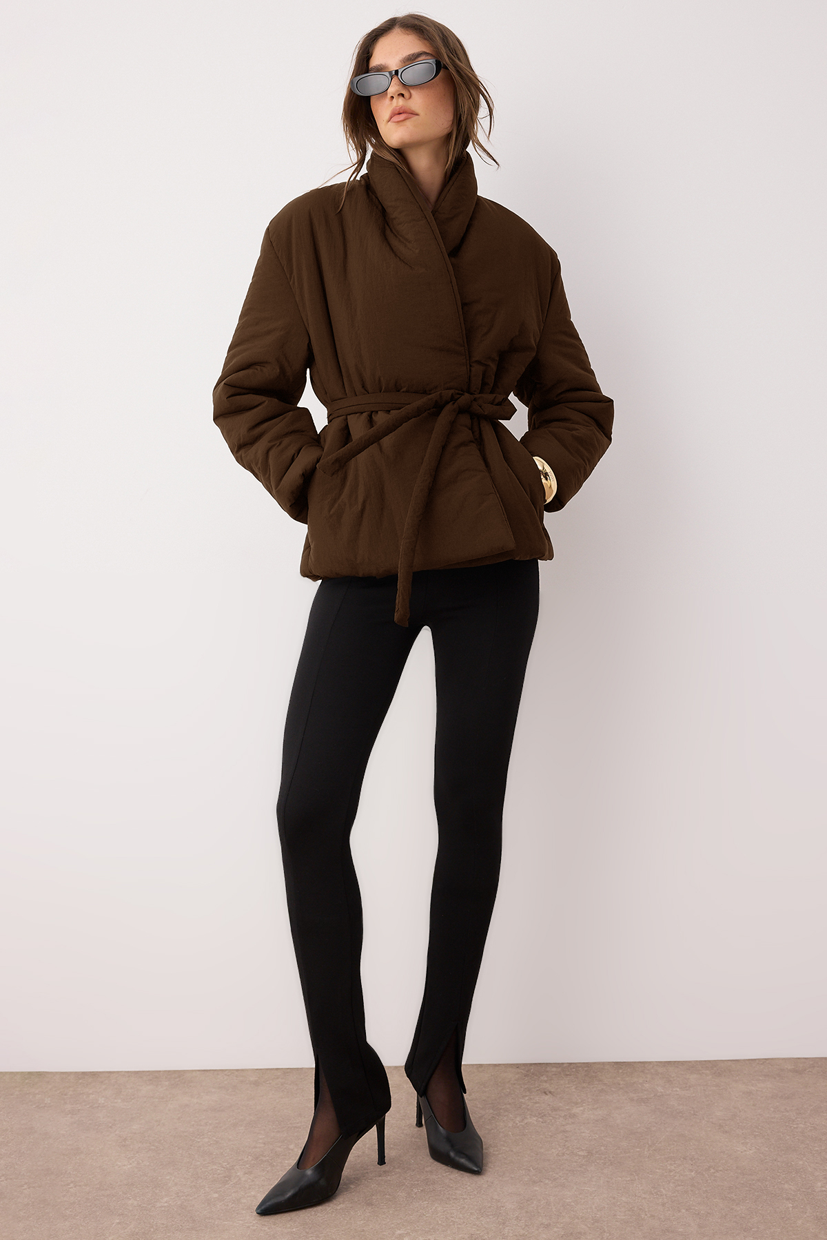 کتپشن پفی زنانه کلاه دار بژ happiness istanbul