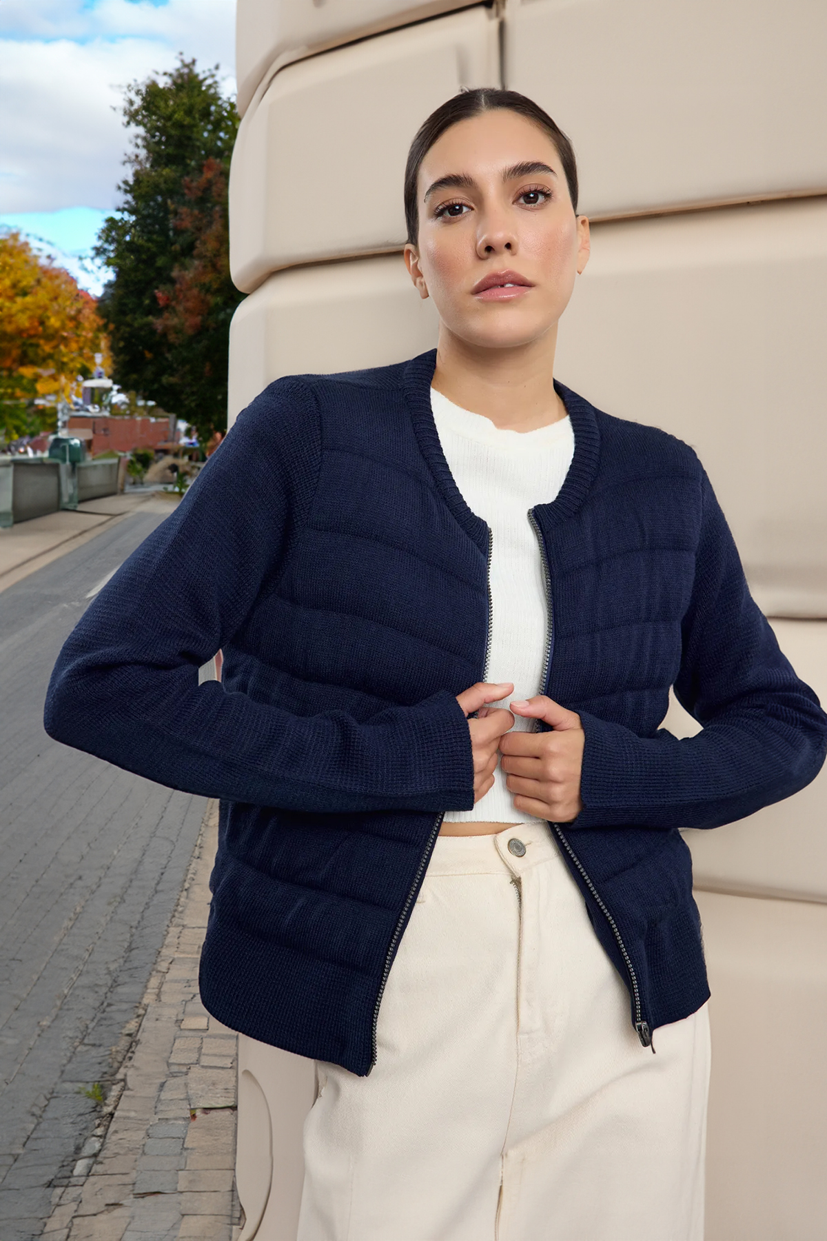 ژاکت زنانه بافتنی یقه گرد زیپ دار سرمه ای trendyolmilla