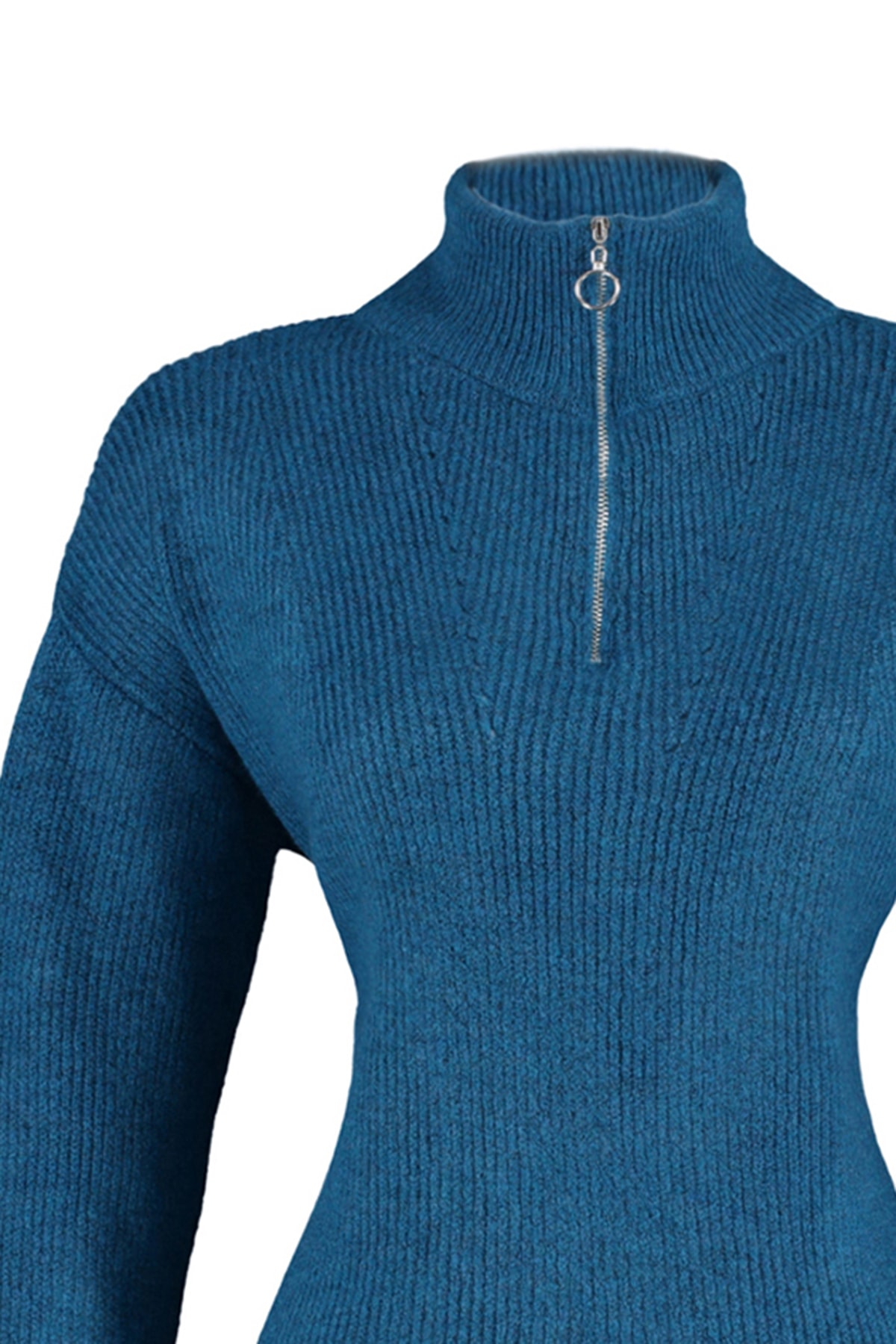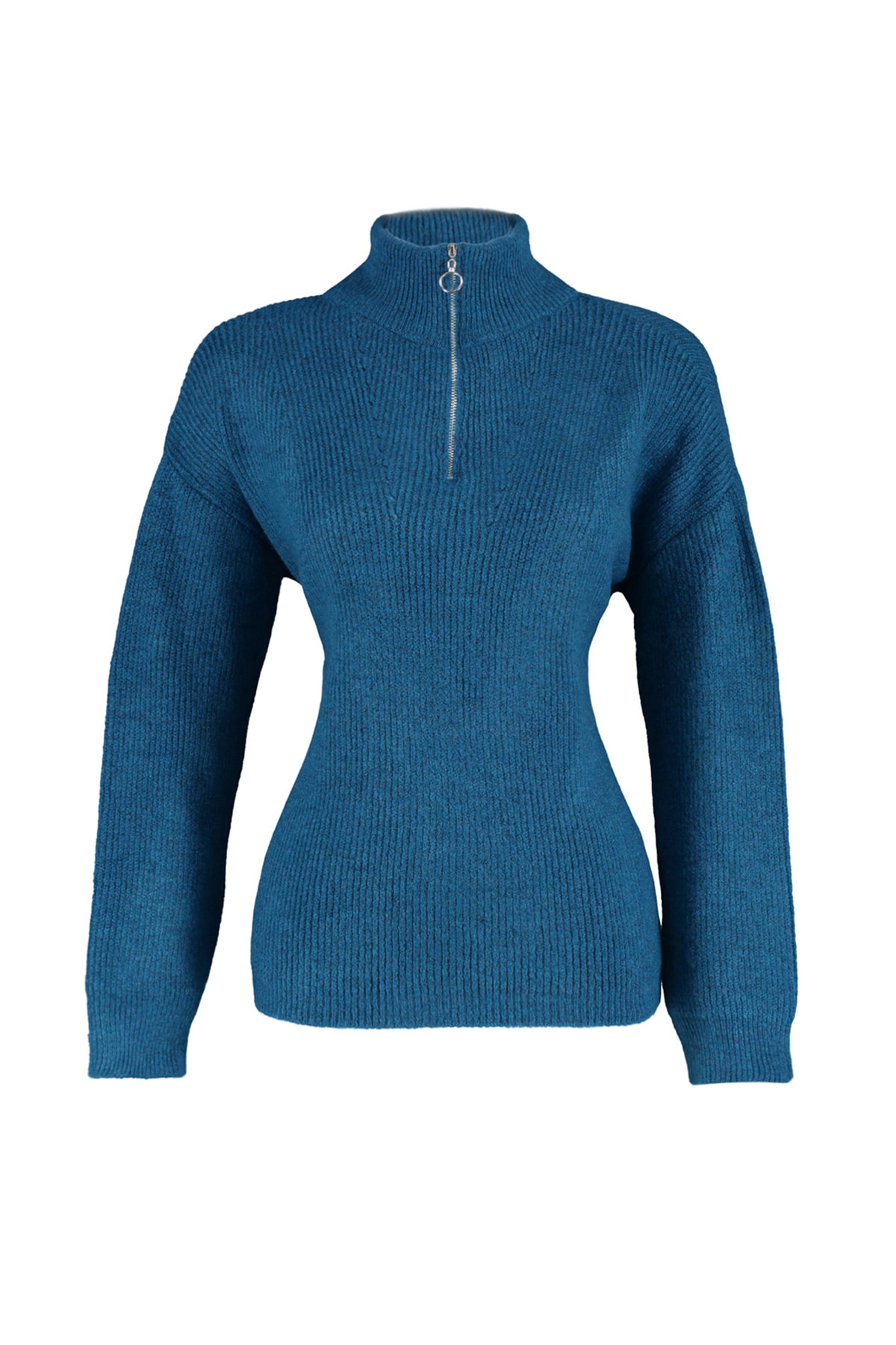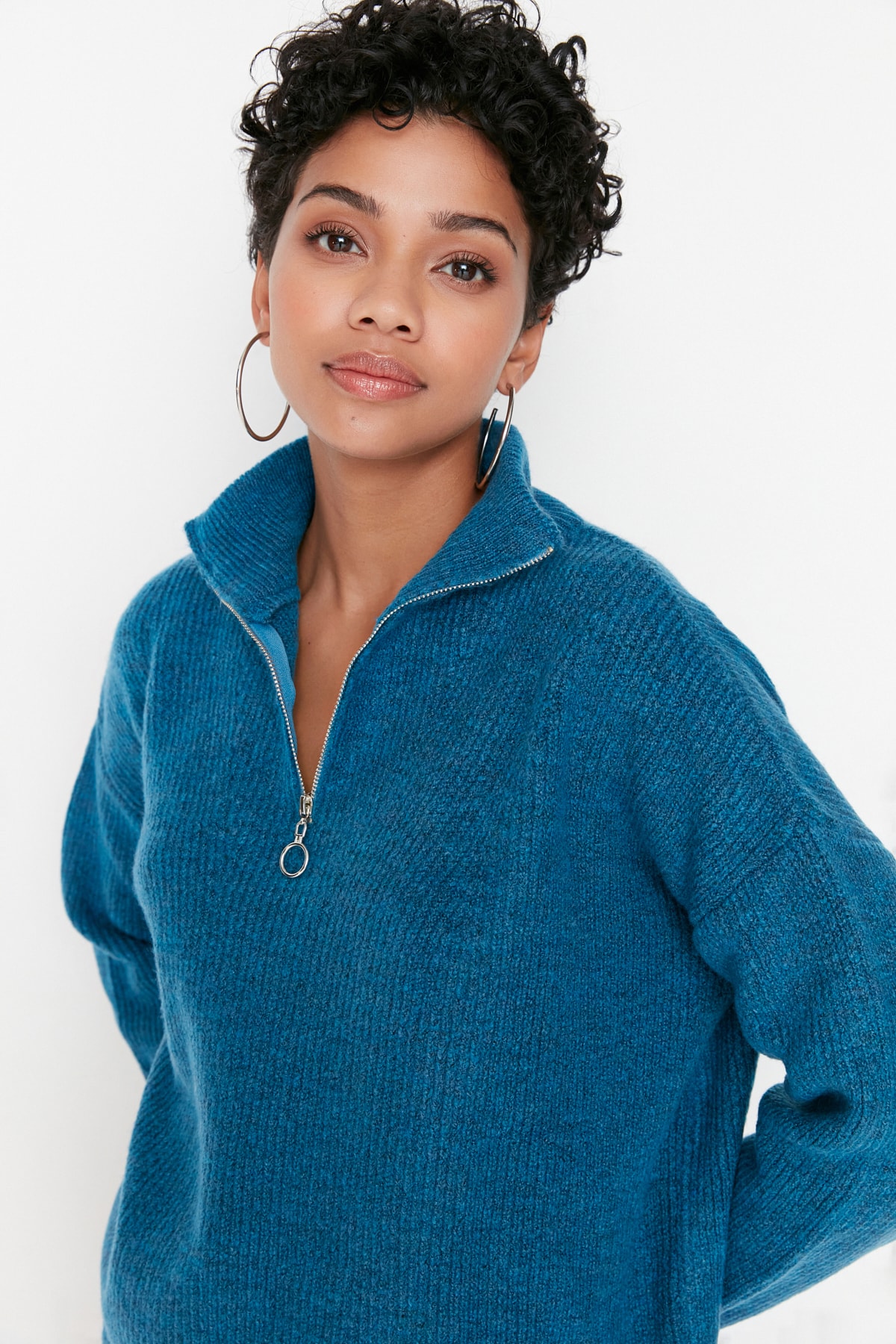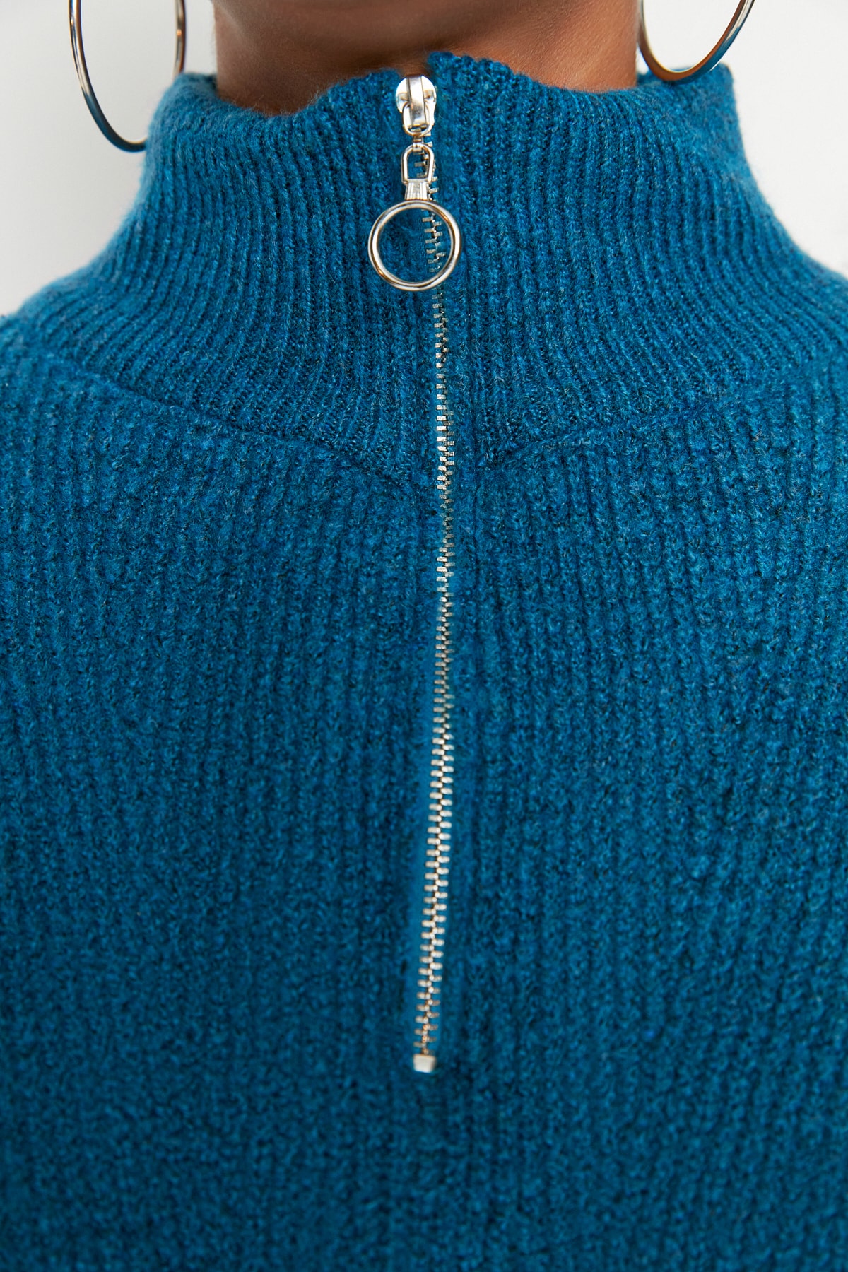 پلیور زنانه بافتنی زیپدار آبی نفتی با بافت نرم trendyolmilla