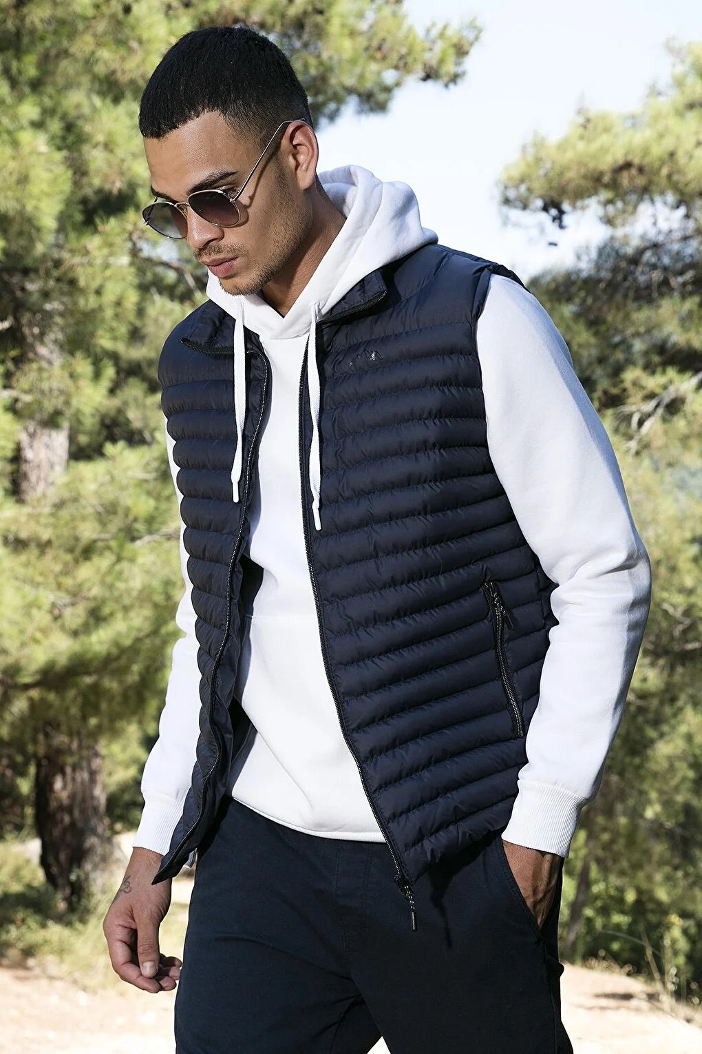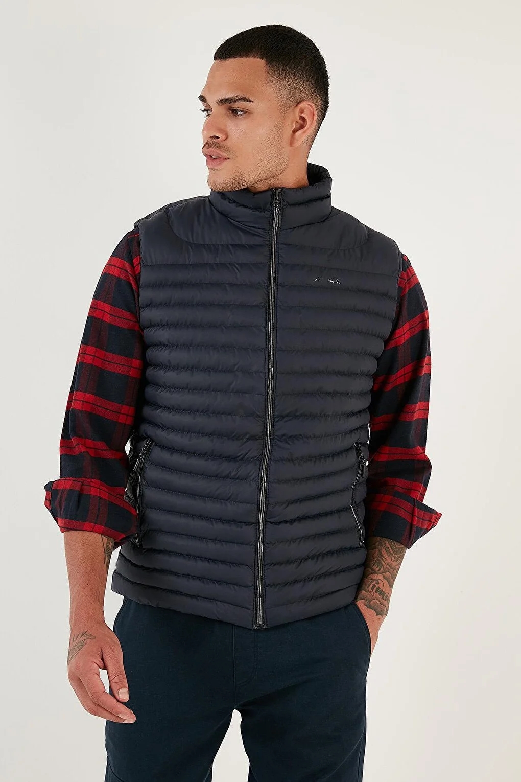 جلیقه مردانه بادی یقه ایستاده مقاوم در برابر آب و باد Buratti سورمه ای
