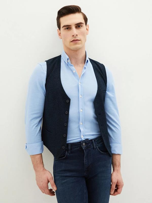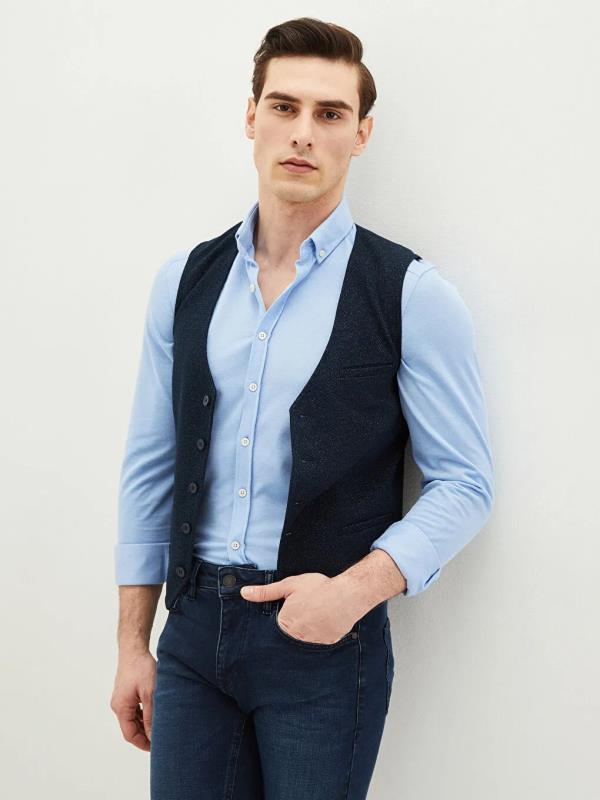 جلیقه مردانه کلاسیک اسلیم فیت LCWAIKIKI Classic سورمه ای