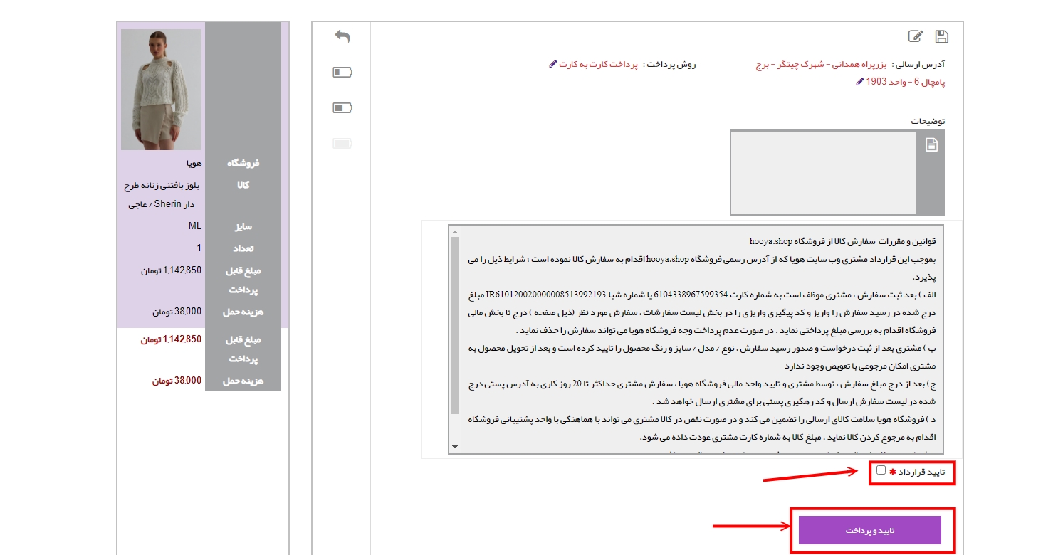 10- بعد از ثبت سفارش برگه سفارش برای شما صادر می شود که شامل مشخصات کامل سفارش شما ، مبلغ قابل پرداخت ، شماره کارتی است که باید پرداخت به آن انجام شود.